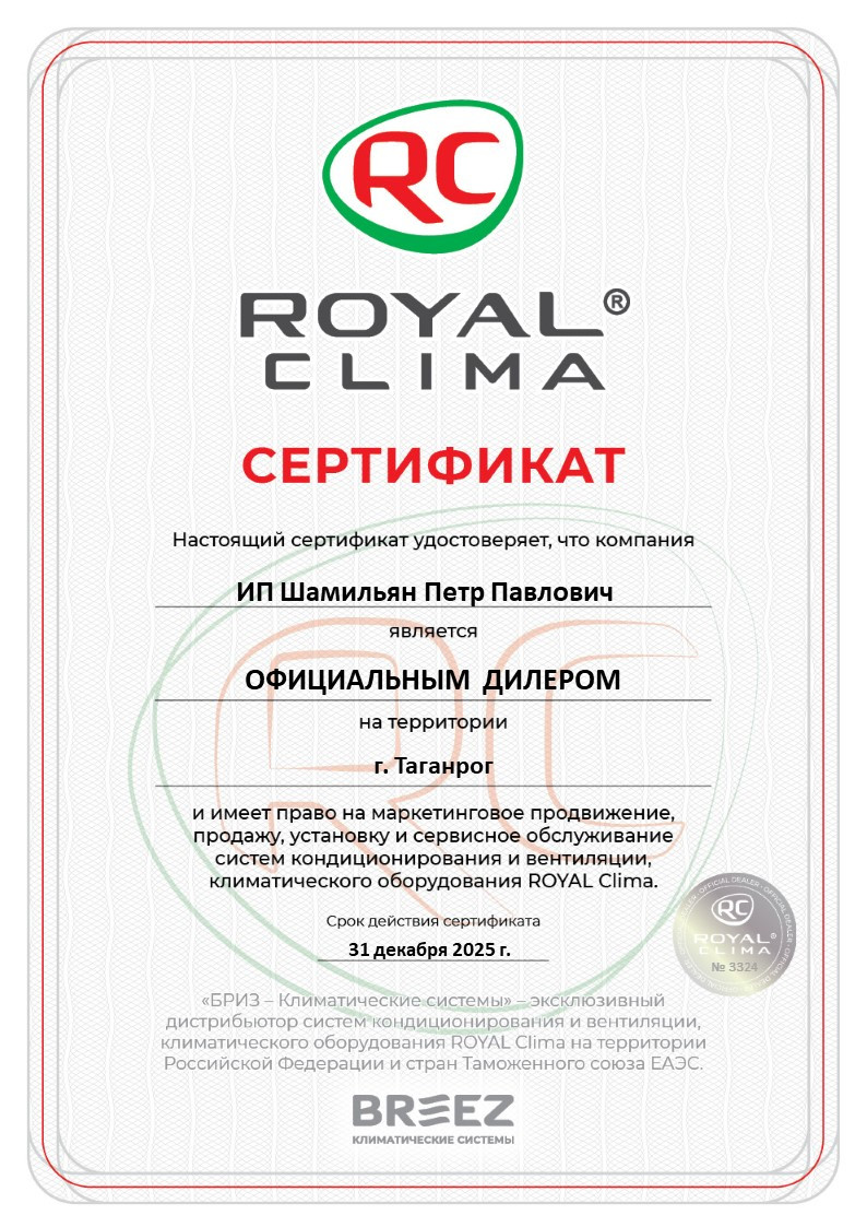 - официальный дилер Royal Clima, Centek,