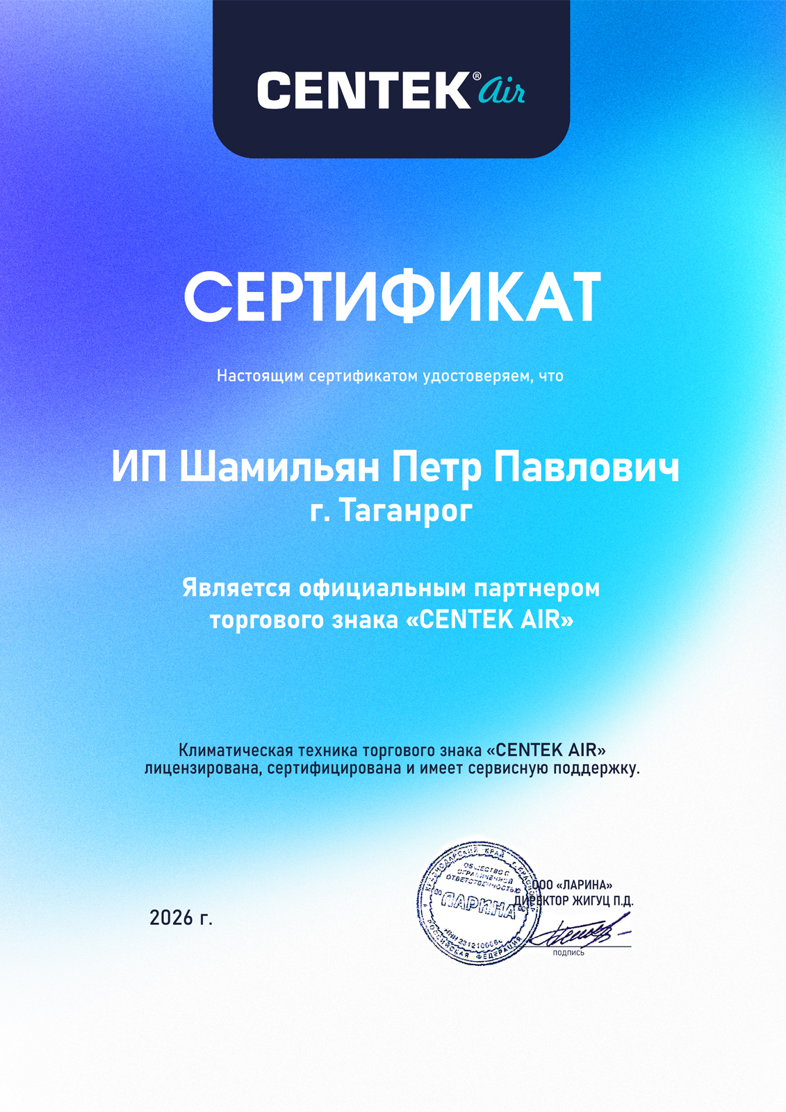 - официальный дилер Royal Clima, Centek,